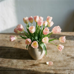 Recorta los tallos en diagonal. Agua abundante con conservante floral. Retira los estambres al abrirse (manchan la ropa y muebles). Los capullos se abren progresivamente, dando varios días de espectáculo. Cambia el agua cada 2-3 días. Duración estimada: 10-14 días.